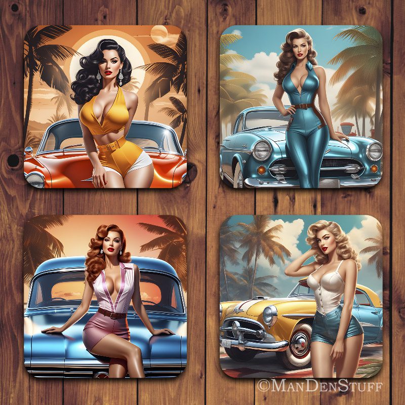 Sexy Pinup Girls & Classic Cars Coasters